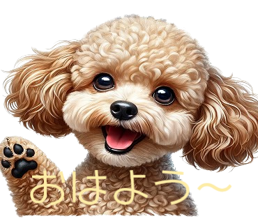 スタンプ説明文: 日常で使える、かわいいトイプードルのスタンプ! この愛らしい子犬で気持ちを表現 ― 嬉しい時、悲しい時、ワクワクする時、眠い時に。挨拶や感謝、楽しい会話にぴったり。